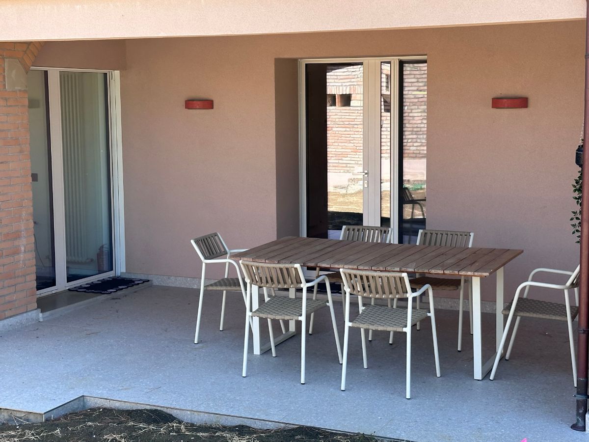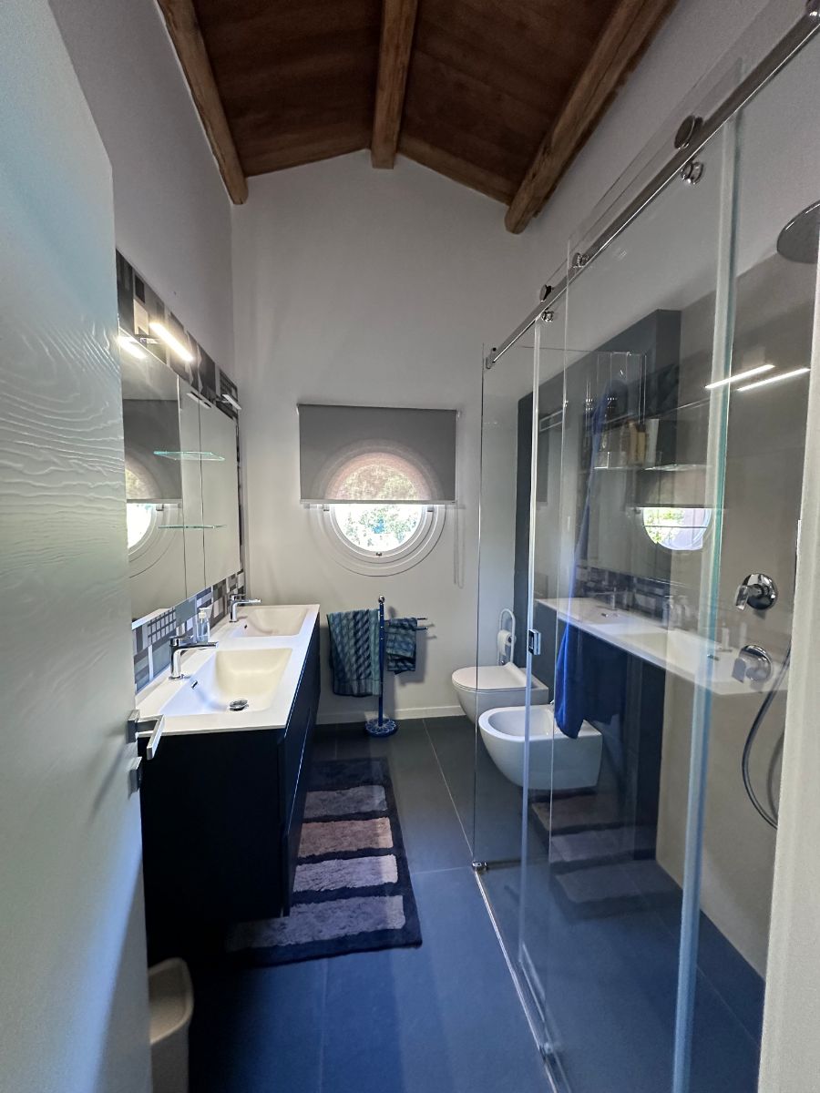 «Parliamo – spiega Ilaria – di un immobile che era già abitabile, sottoposto a dei lavori di ristrutturazione che hanno dato l’opportunità, mantenendo intatta la struttura esterna, di mettere mano e ridisegnarne quella interna, studiando per tutto l’arredo degli ambienti della casa, ma anche per l’area della piscina, una immagine moderna. E siamo riusciti, a parere nostro e dei nostri clienti, a creare e dare a questi spazi uno stile unico, senza essere eccessivo. Con una eleganza evergreen che sa destare interesse ma non rischia di stancare. E giocando sui toni dei colori e sui dettagli per movimentare il tutto».