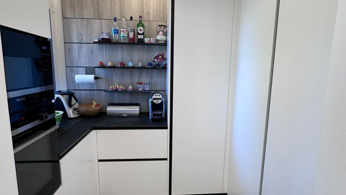 E dunque, «abbiamo arredato un’ampia cucina, divisa in tre locali – una dispensa dove abbiamo fatto ricorso a una colonna attrezzata, un ambiente principale e la veranda con finestra sull’esterno – e la zona pranzo con tavolo e camino. E ancora una grande zona living, parliamo di grandi spazi distinti tra loro da colonne, dove abbiamo fatto ricorso tra gli altri ad un divano chaise longue. All’ingresso, un armadio con cappottiera e un mobile dove posare chiavi e oggetti garantiscono comodità e funzionalità. Nelle camere della zona notte, abbiamo lavorato su cabine armadio in cartongesso e carta da parati per rendere particolari gli ambienti e dare loro l’impronta che il cliente cercava. Su piscina e zona relax, divani e tavoli da esterno sono stati la soluzione ottimale tra veranda e spazio all’aperto per creare un ambiente confortevole ed elegante. E abbiamo arredato poi i bagni della casa. Con l’emozione, giorno dopo giorno, di vedere quel progetto pensato e proposto su render al cliente prendere forma concreta e diventare reale. Davanti ai nostri occhi e soprattutto quelli del cliente. Nel grande impegno, di mesi, che richiedono, sono sicuramente questi i traguardi che rendono speciale il nostro lavoro».